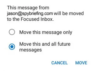 2. – On the menu displayed tap Move to Focused Inbox
